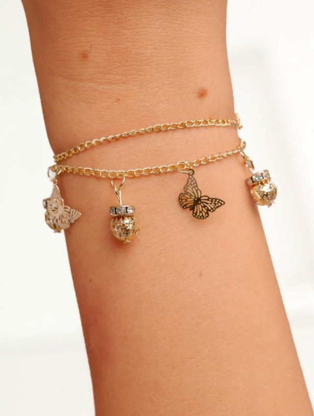 Bransoletka z ozdobnymi zawieszkami w kolorze złotym Dorine - wzór 2 to elegancka i modna propozycja dla kobiet, które cenią sobie subtelny, ale wyrazisty dodatek. Złoty odcień bransoletki nadaje jej klasycznego, ponadczasowego charakteru, który doskonale komponuje się z różnymi stylizacjami. Ozdobne zawieszki dodają całości lekkości i uroku, sprawiając, że bransoletka staje się wyjątkowym elementem biżuterii, idealnym zarówno na co dzień, jak i na specjalne okazje. To delikatny, ale jednocześnie efektowny dodatek, który podkreśla kobiecy styl i elegancję.