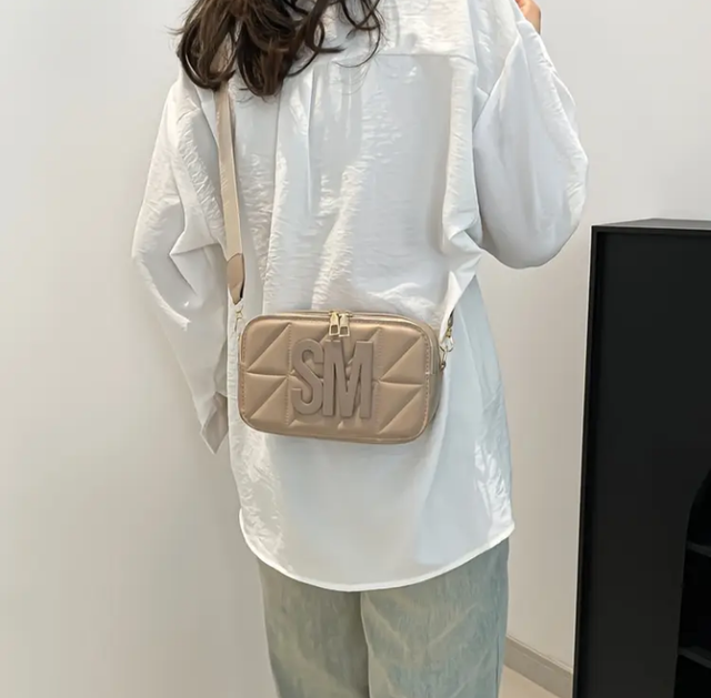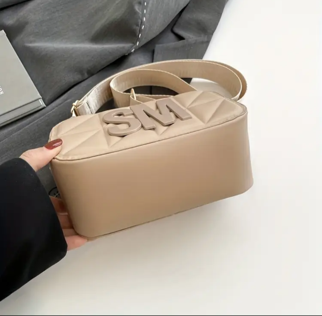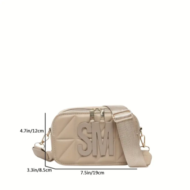 Stylowa Damska Torba Listonoszka, Pikowana z Odważnym Napisem "SM", Regulowany Pasek na Ramię, Lekka Torba na Zamek . Wyściełana Idealna do Stylu Ulicznego i Codziennego Użytku, Dostępna w Kolorach Beżowym,Różowym .