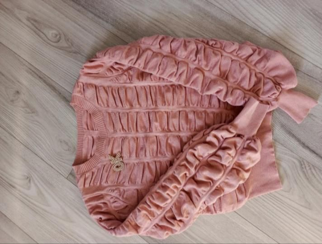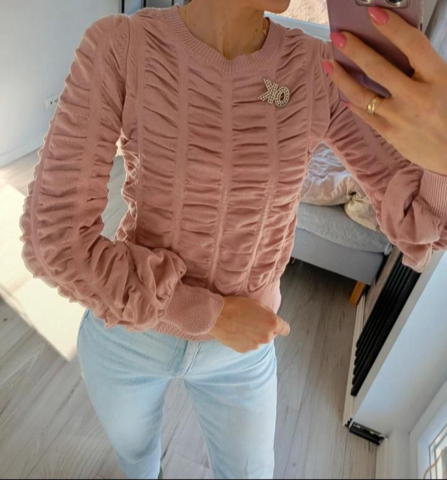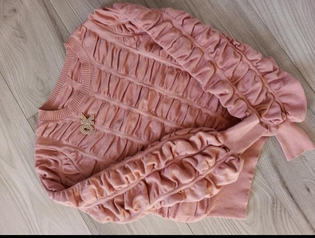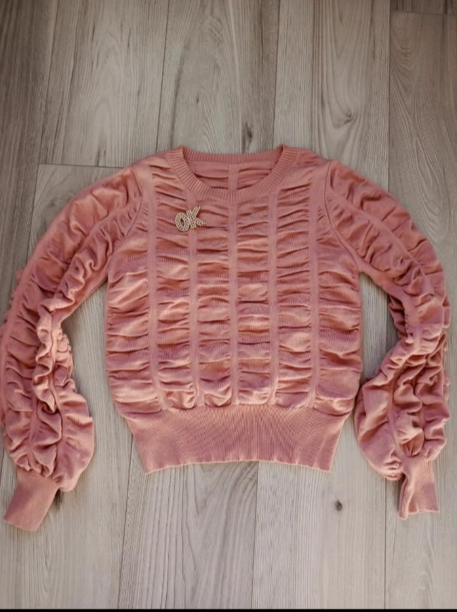 Unikatowy sweterek damski pudrowy róż / marszczony